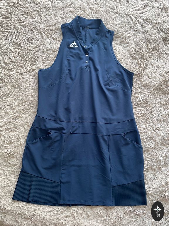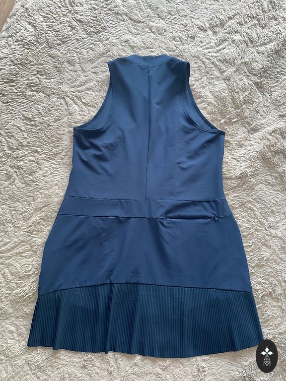 Новое платье, размер M. На мне, при размере M, очень удобно, не облегает. Застежка на молнии.