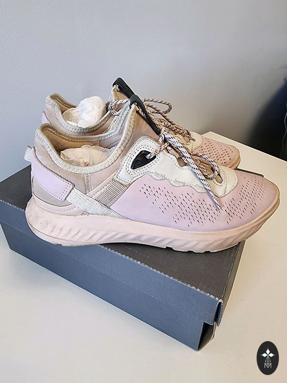 Размер 39 - стелька 24,5-25 см. Очень удобные для ходьбы... также легкие (для тех, кто любит легкую обувь). Практически эта обувь удобна, как тапочки, так как нигде не жмет и не натирает, потому что материал обуви не толстый и не жесткий. Надеты пару раз, не изношены. Дефектов нет, только малозаметные следы использования внизу на серебряной полоске. Общее состояние очень хорошее. Отправляю быстро.✨️