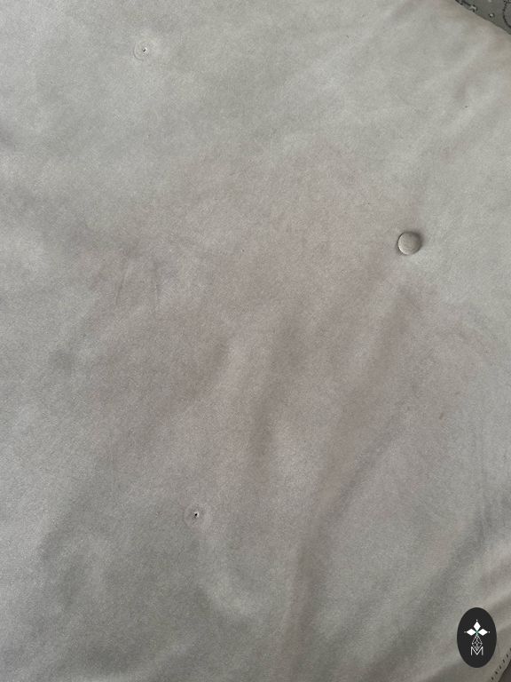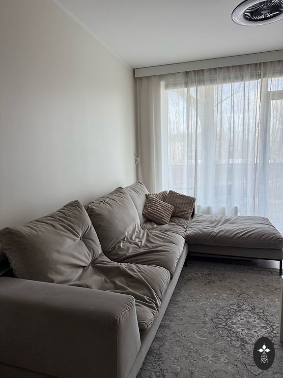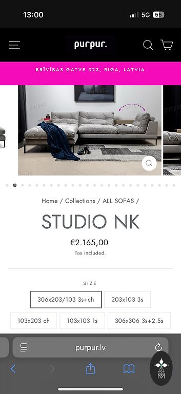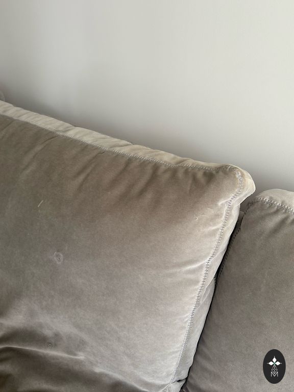 Dīvāns ar mazu defektu, nedaudz noliecies sturis, redzams bildē