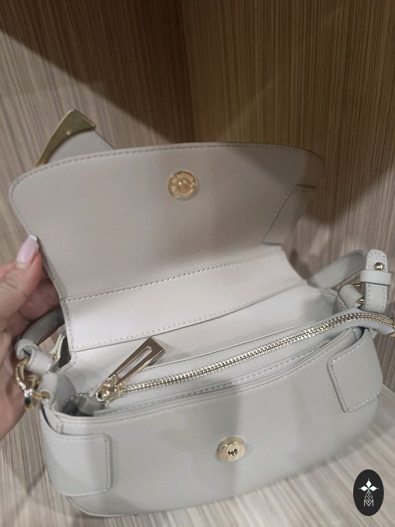 Сумка DKNY BRYANT SADDLE BAG - кожаная (3-е фото) через плечо. Бежевого цвета. Размеры: ширина 19,5 см; высота 17 см, глубина 7 см в самом широком месте. С магнитной застежкой, внутри 2 маленьких кармана, один на молнии. Снаружи также один небольшой карман сзади.
