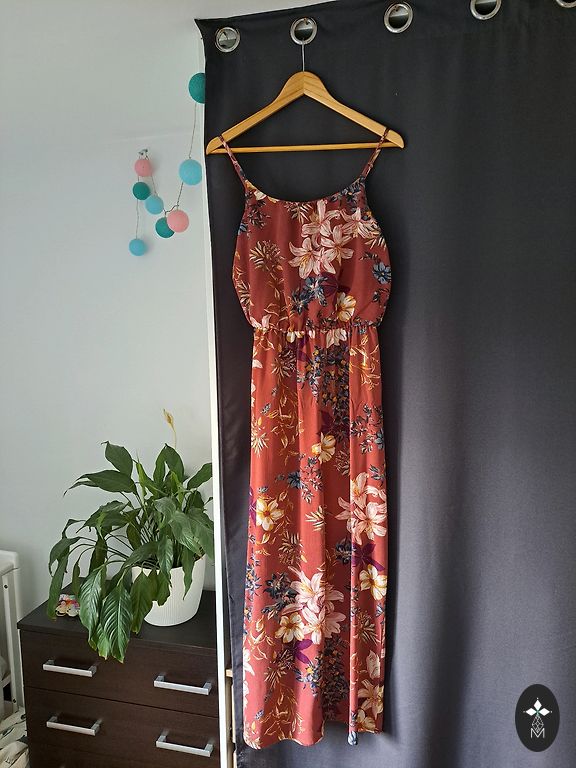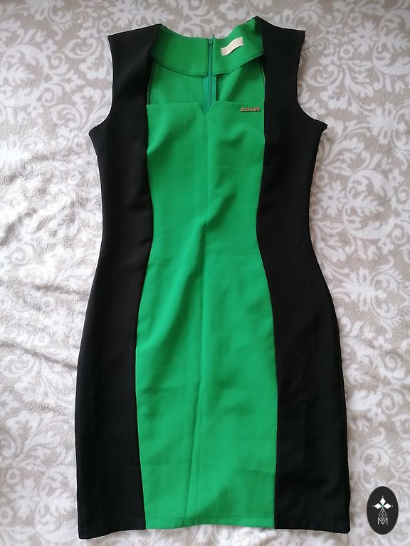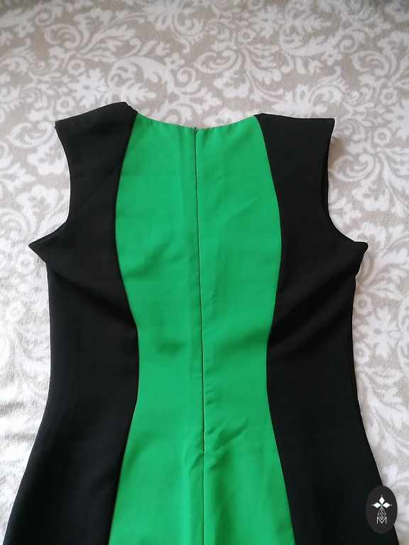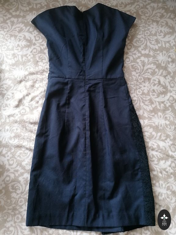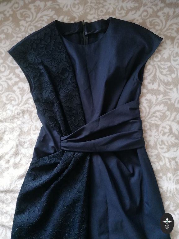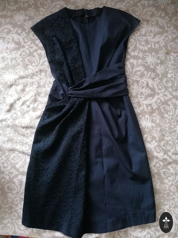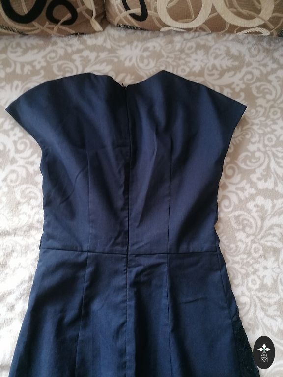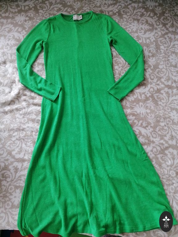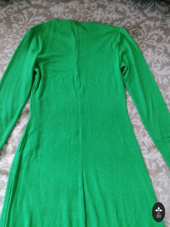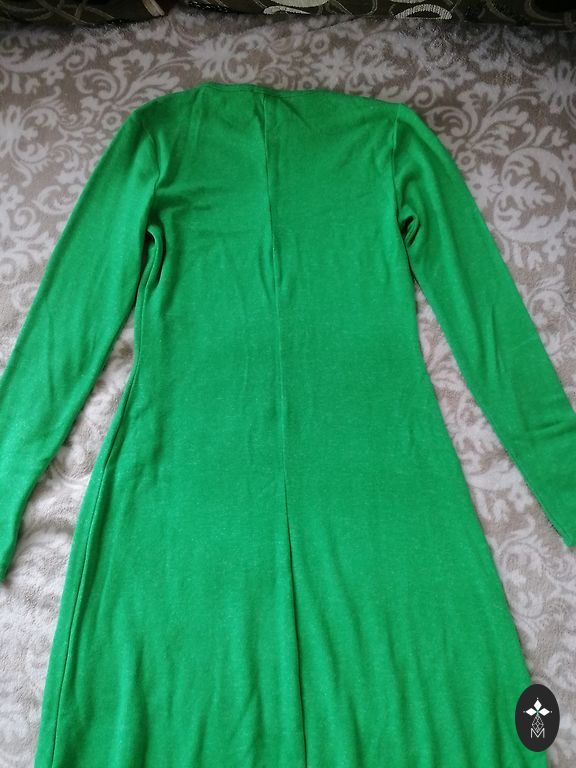 Gandrīz jauns, krūšu apkārtmērs 104 cm, viduklis 86 cm, gurni 108 cm un garums 97 cm.