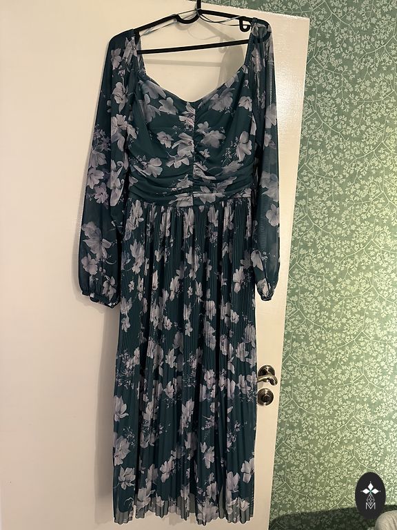 Платье надето 1 раз, очень женственное. V-образный вырез, ткань мягкая и приятная. Очень хорошо сидит. Плюс не мнется :) Размер S, но подходит и для M.