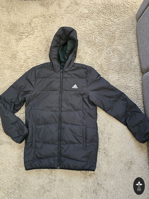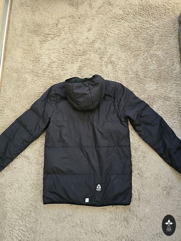 Jaka ar flīsa siltinājumu iekšpusē. Piedurkņu iekšējais garums 30 cm, kopējais garums 47 cm. Neliels pleķītis nav izmazgājies. Lpp ir cenā, pārējie nav.