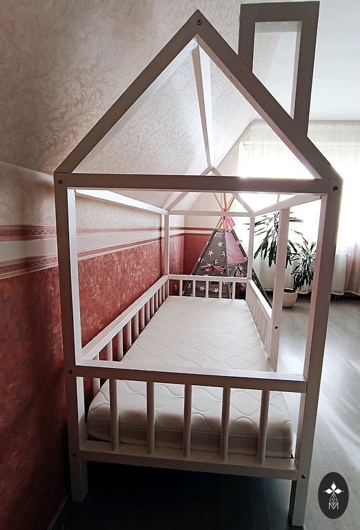 Gulta ar matraci (oriģinālo). Līdzi došu ūdens necaurlaidīgo pārklāju. Gultas izm. 160x80. Mala noņemama. Un kaste gultasveļai, nebija kompektā ar šo gultiņu.