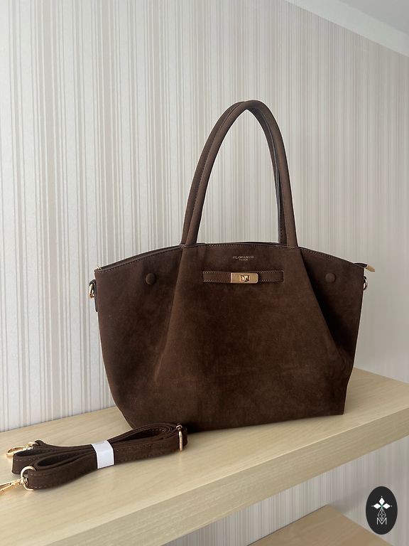 Pruun seemisnahast kott 24*18cm. Pikk rihm on olemas, saab reguleerida pikkust. Kasutatud mõni päev, nagu uus.