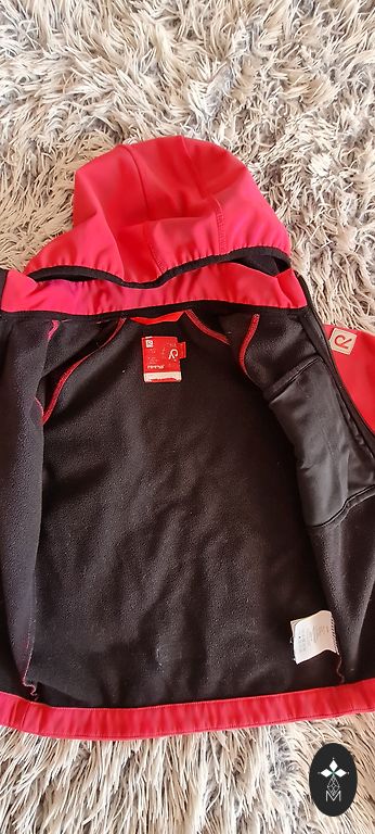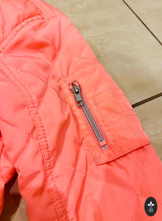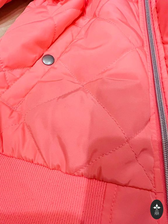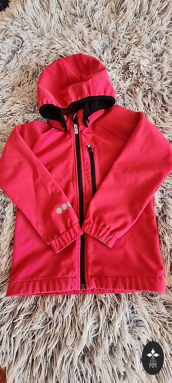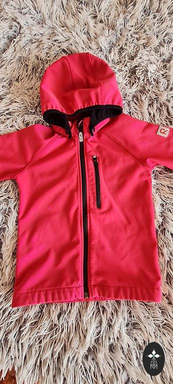 Ereline kolmekvärviline jope tüdrukule. Eemaldatav kapuuts, seljal 2 helkurit. On 5 lukuga taskut. Kinnitus lukuga ja takjakinnitustega.