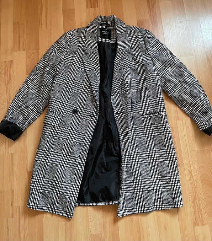 Selling a classic black coat. 20% wool, the rest polyester. Chest - 60cm*2, length 95 cm from shoulder seam. Straight model. Worn once, slightly loose. Size 42.