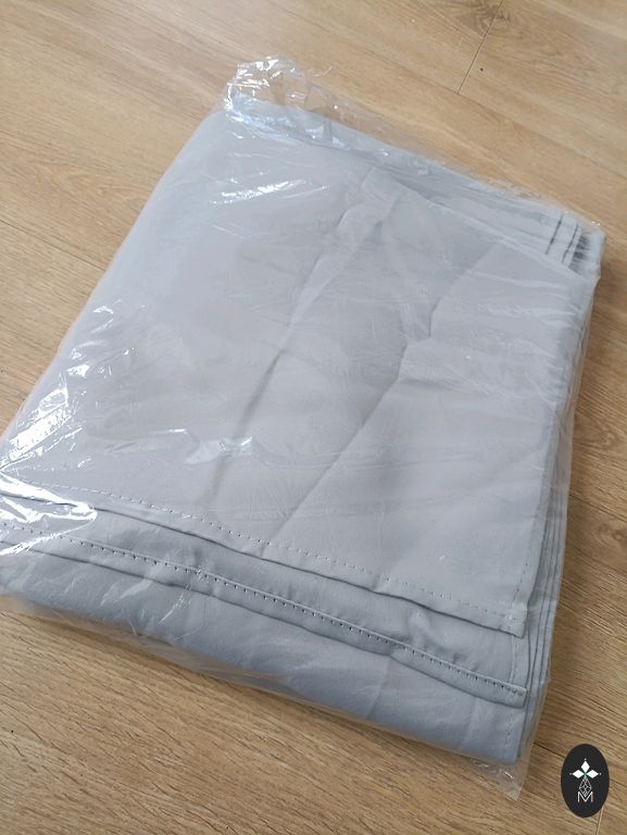 New curtains, still in packaging.