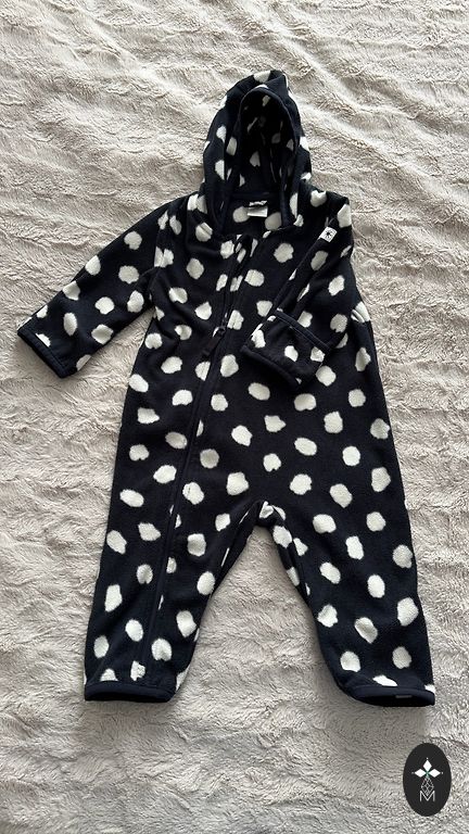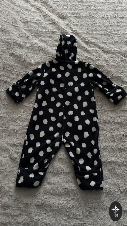 Šiltas flisinis (viduje) kombinezonas pavasariui/rudeniui, vėsesnėms dienoms, skirtas 3-6 mėn. amžiaus vaikams. Deja, spėjome uždėti tik 2-3 kartus, vaikas jame atrodo tikrai mielai, kai uždedama kepurė su ausytėmis. ❤️