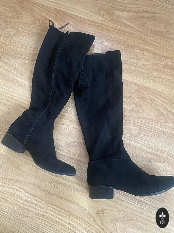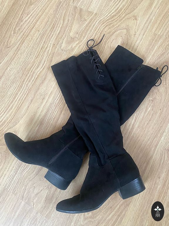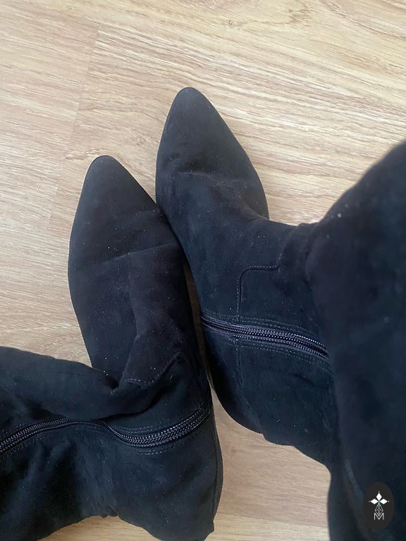 Batai yra puikios būklės, dėvėti tik vieną kartą. Kulnas 7 cm, bato ilgis 41 cm, skersmuo apie 37 cm. Tiks gana lieknai kojai.