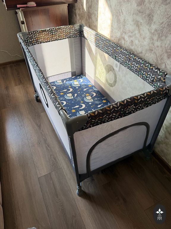 Ērts un praktisks šūpulis-gultiņa ar matracīti (regulējams slīpums, ritentiņi ērtai pārvietošanai, noņemama maliņa siksnas, lai piestiprinātu pie vecāku gultas)