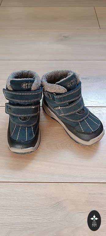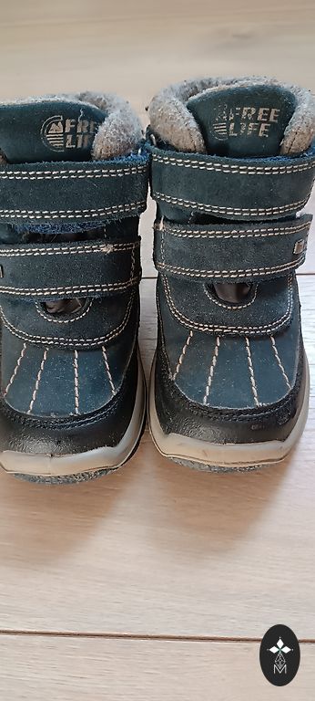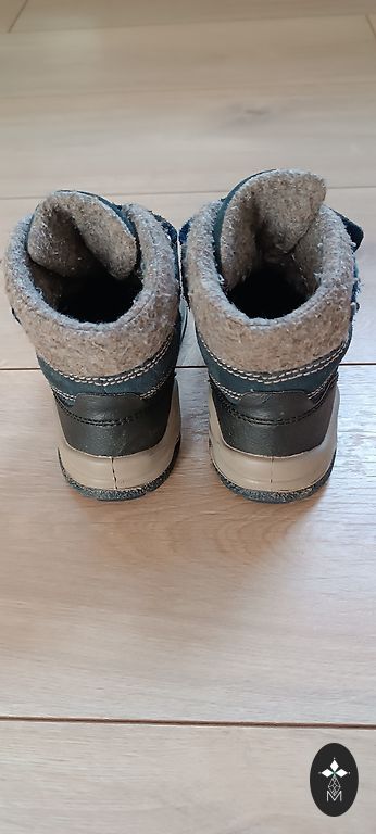 Starpsezonas zābaki zēnam. Valkājis viens bērns. Papēžu daļā iekšpusē padilis audums.