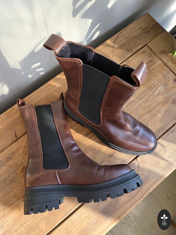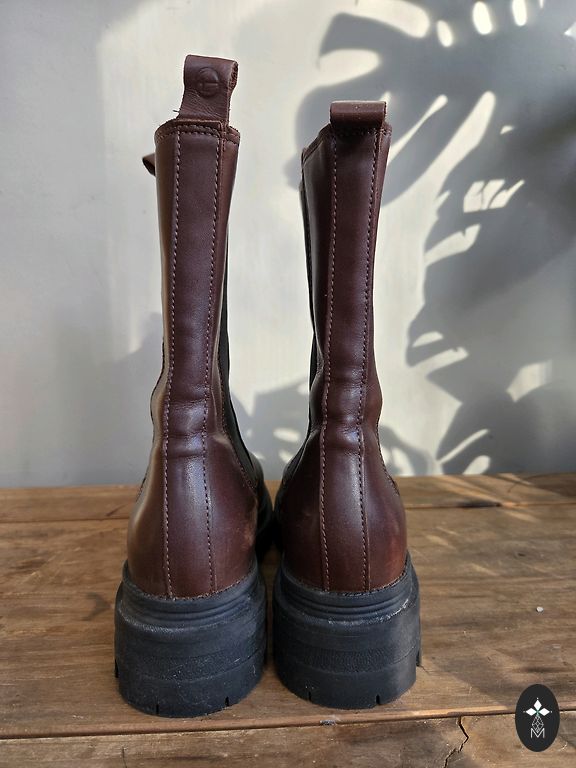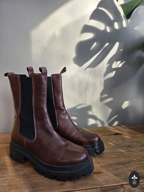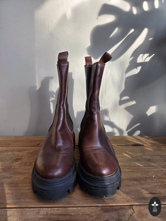 Leather ankle boots without defects. Platform height 10 cm, front part height 2.5 cm, insole length 26.5 cm.