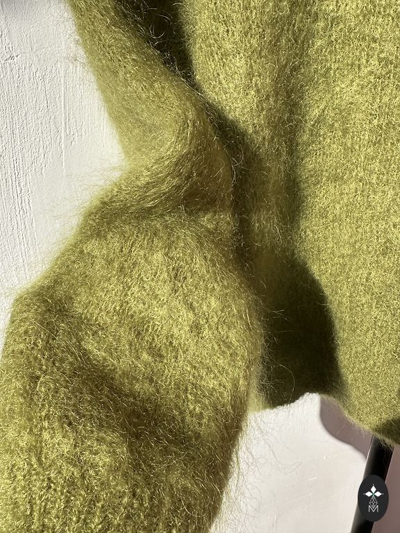 Short-sleeved sweater. Bought it for myself, but the color doesn't suit. Soft, cute, made of mohair. Fits M. Made in Italy.