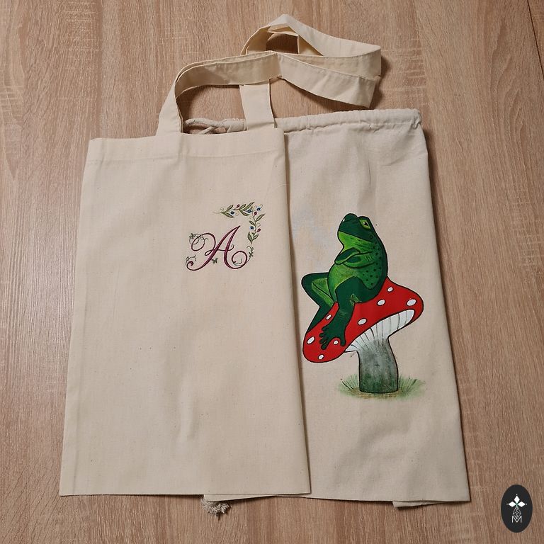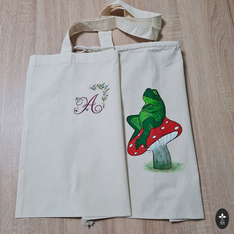 Viimasel fotol on näide, kuidas sellistele kottidele tikkida ja joonistada. Näidised ei ole müügil!