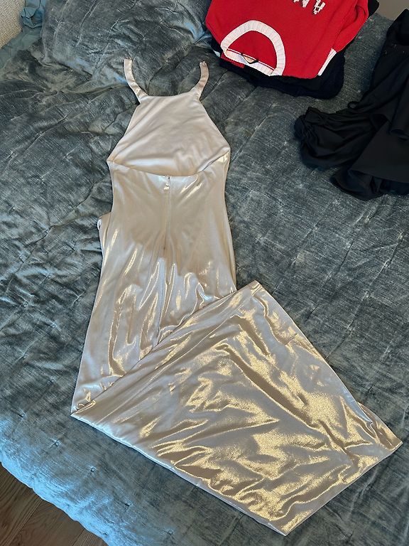 Ilga Gucci šilko suknelė, puikios būklės, IT dydis 38. Ilgis 138 cm, pažastų zonoje prieš krūtinę (suknelė be petnešėlių) 40 cm, juosmuo lanksčiai reguliuojamas diržu ir sutraukimu.