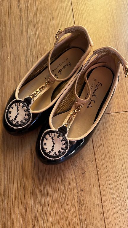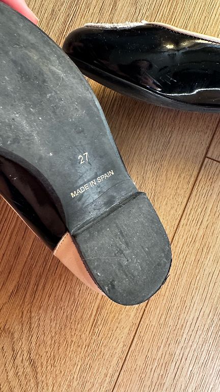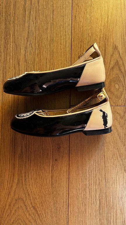 Šventinės bateliai, nurodyta 28, bet tiks 27. Vidpadis ~17,5 cm. Yra šiek tiek įbrėžimų - žiūrėkite paskutinėje nuotraukoje, bet jie nėra labai pastebimi (kaip ir lakuotų batelių trinantis vienas į kitą, bet galbūt yra koks triukas, kaip juos pašalinti). Labai mažai dėvėti, nes koja išaugo.