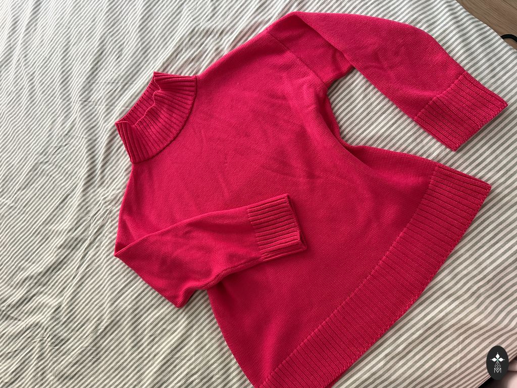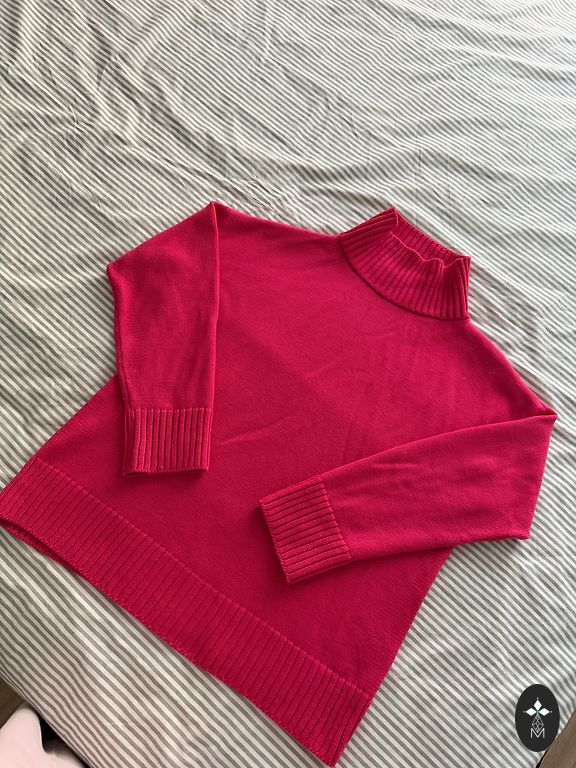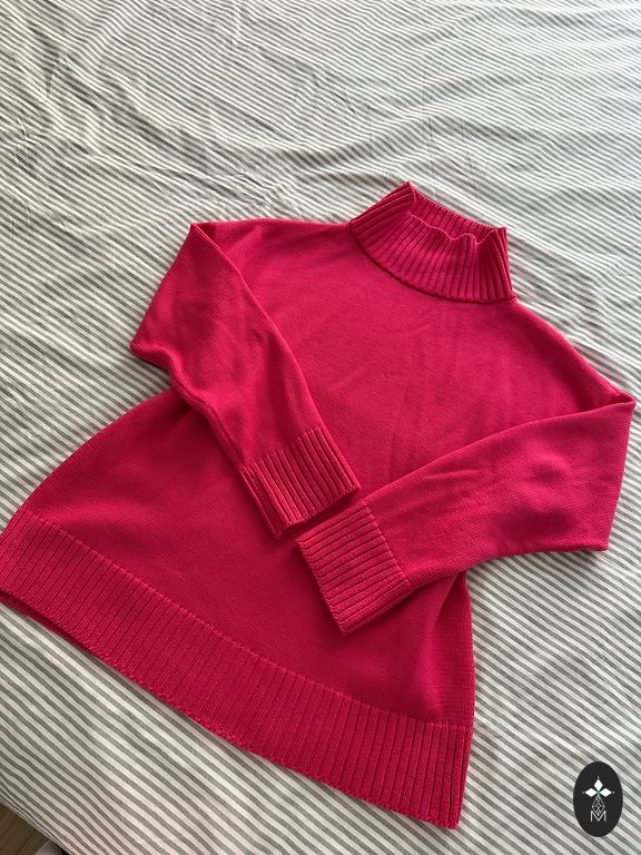 Sastāvs: 95% vilna, 5% kašmirs, krāsa pistācija. Krūšu apkārtmērs 110 cm, muguras garums 73 cm, priekšējās daļas garums 65 cm.