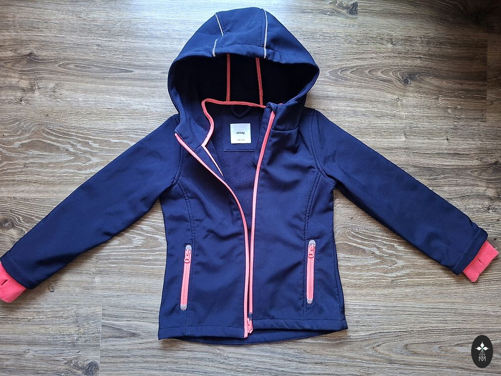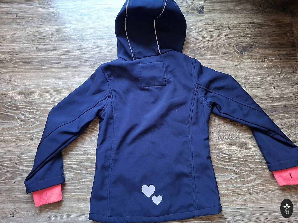 Rozā 116 izm. Reima softshell jaka ar flīsa oderi. Uz rokas neliels pleķītis.