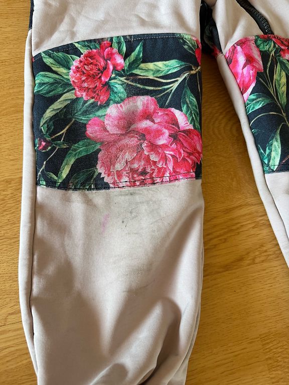 Drawbacks - broken hanging loop. Small signs of wear can be seen on the knees.