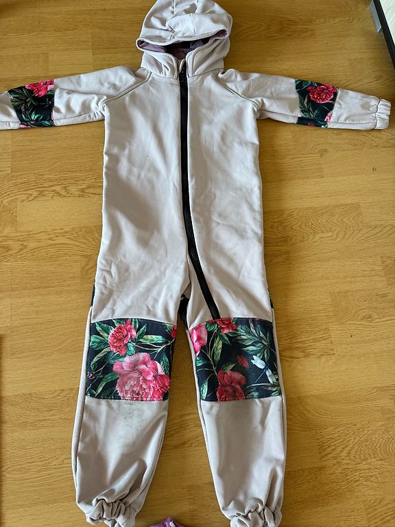 Size 110 jumpsuit, but will also fit the next size, actually larger. The inside is fleece-like.