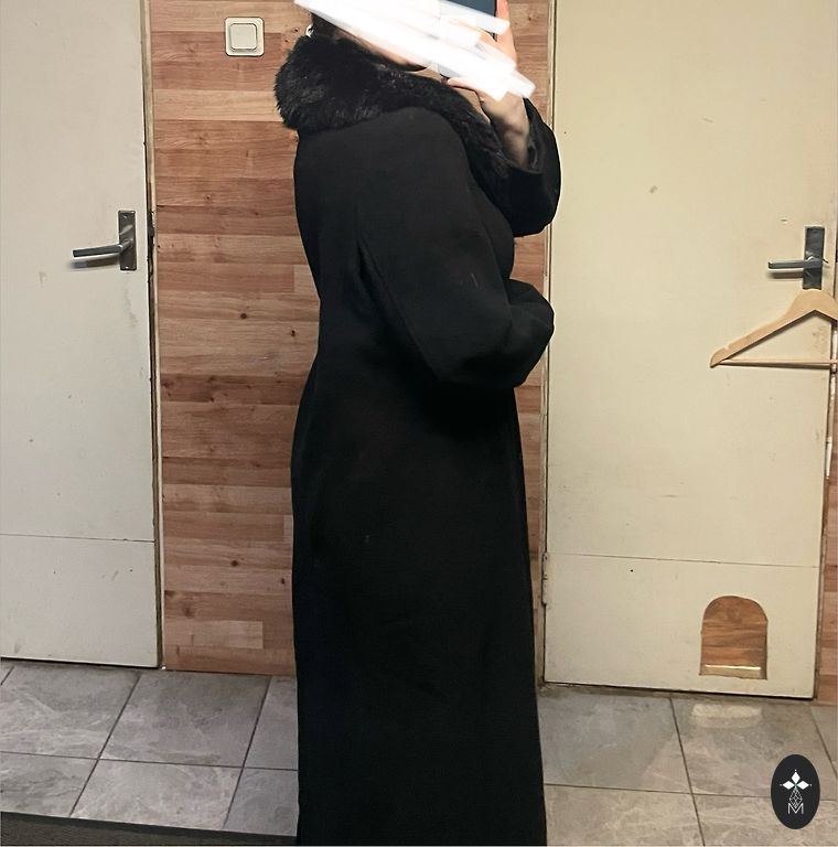 Ļoti skaists un garš mētelis, sastāvā 50% vilna. Uzvilkts 2 reizes.