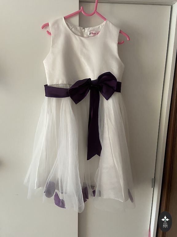Ļoti skaista kleita ar izšūtiem spīdumiem. Svārki ir pagarinsti aizmugurei.