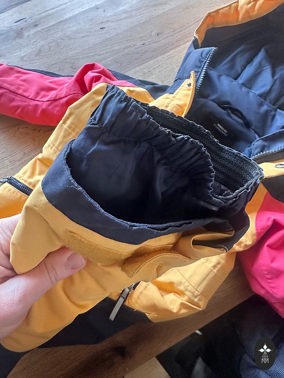 Worn for 2 seasons, washed as instructed, there are signs of use on the reflective elements, no holes or wear! Labeled size 80 / extension is +10 cm, we also wore it at 95 cm and it fit well!