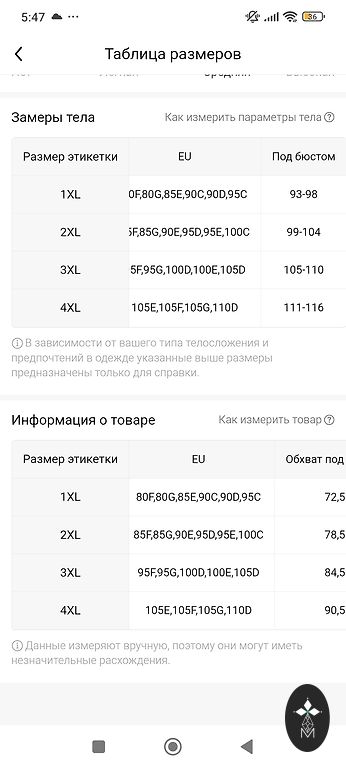 | Обхват под грудью (см) | 95 |