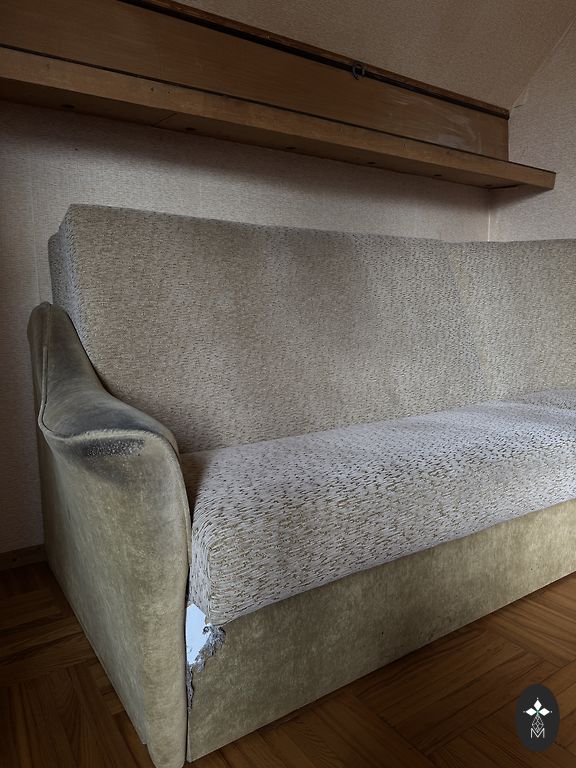 Нормально поживший винтажный диван с креслами. Наше совместное проживание закончилось. Изношенный. Для полного гаражного варианта или других развлечений. Можно получить и по частям. Самовывоз в Кулдиге.