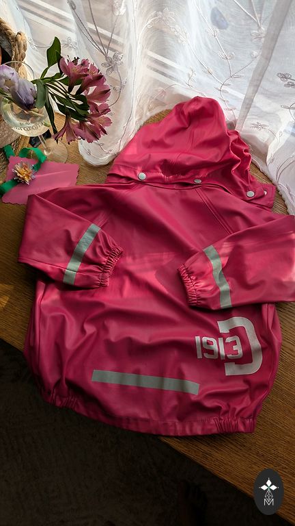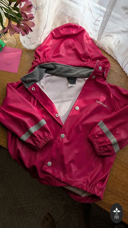 A very beautiful and cool mid-season jacket, windproof and waterproof. There are slight signs of use - a stain in the front and rubs/smudges on the sleeves. But it doesn't particularly stand out.