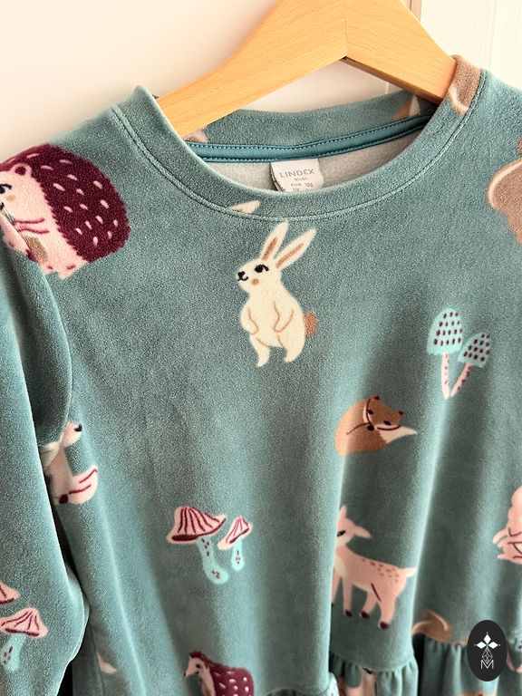 Красивая платье-свитер с лицом медвежонка Руби. Велюровая ткань изготовлена из 100% органического хлопка.