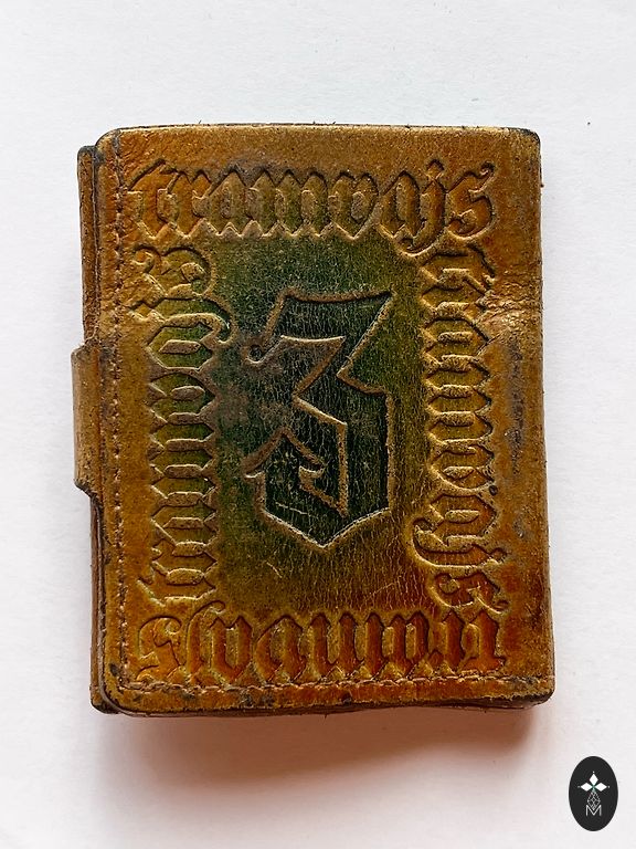 Neliela, antīka Latvijas saktiņa ar tautisku motīvu. Uzraksts uz saktas - "Saulit tecej tecedama".