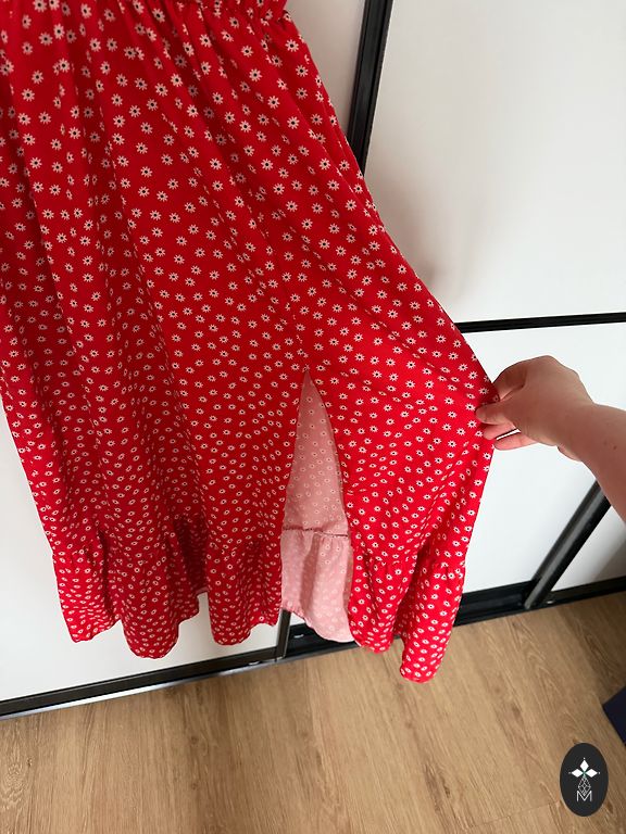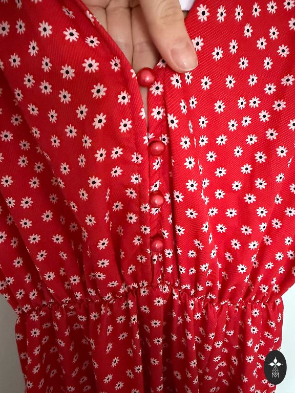 A dress for a warm spring or summer. Very pretty and flirtatious. Length 80 cm, distance between armpits about 50 cm. Suitable for S or small M size.