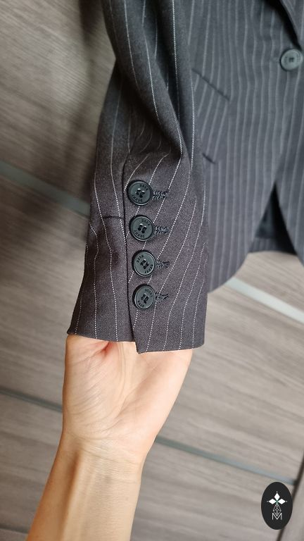 A fitted jacket with shoulder pads, the back seams beautifully highlight the figure.