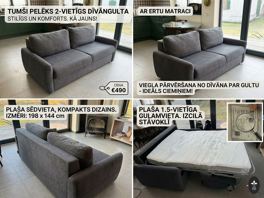 Dīvāns, krēsli izvelkas, viss ir labā stāvoklī