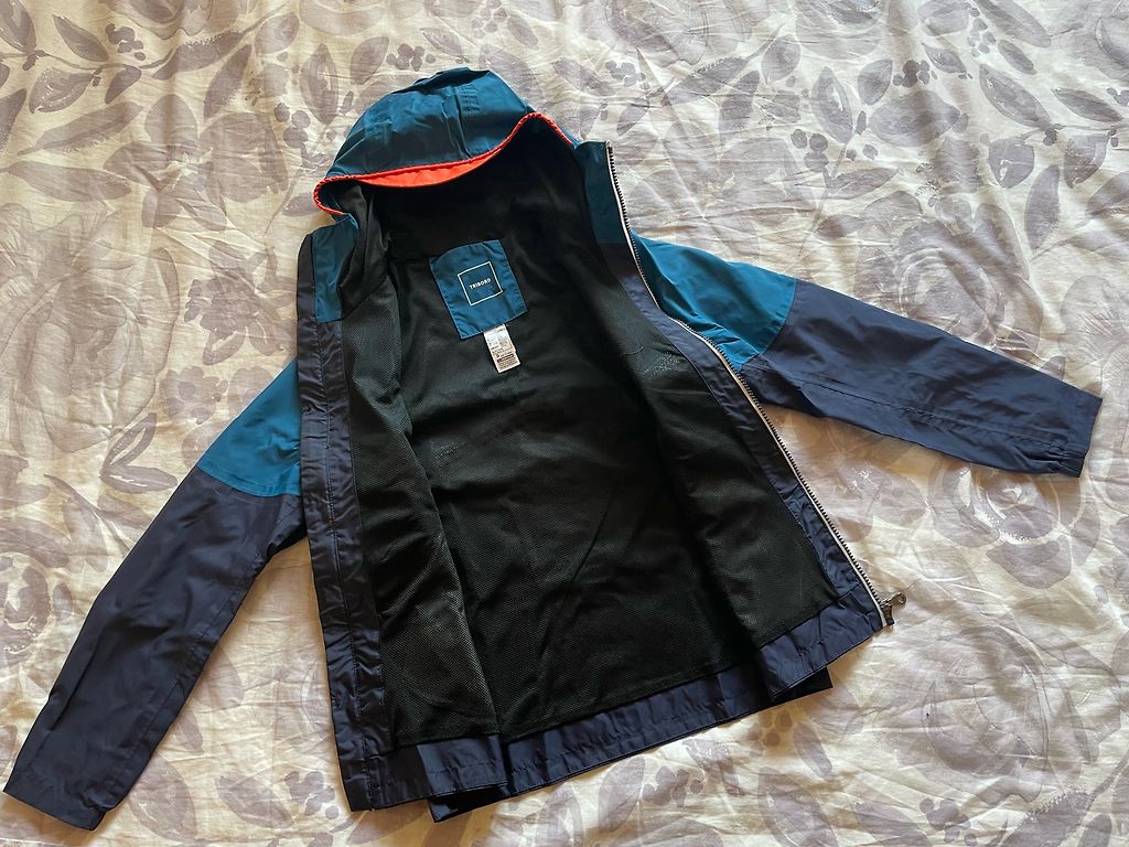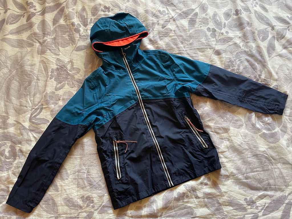 Lietaus striukė gražios dangaus mėlynos spalvos, dėvėta tik 2 kartus, kaip nauja.