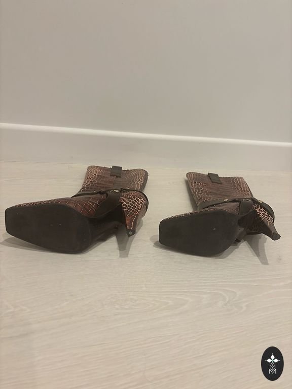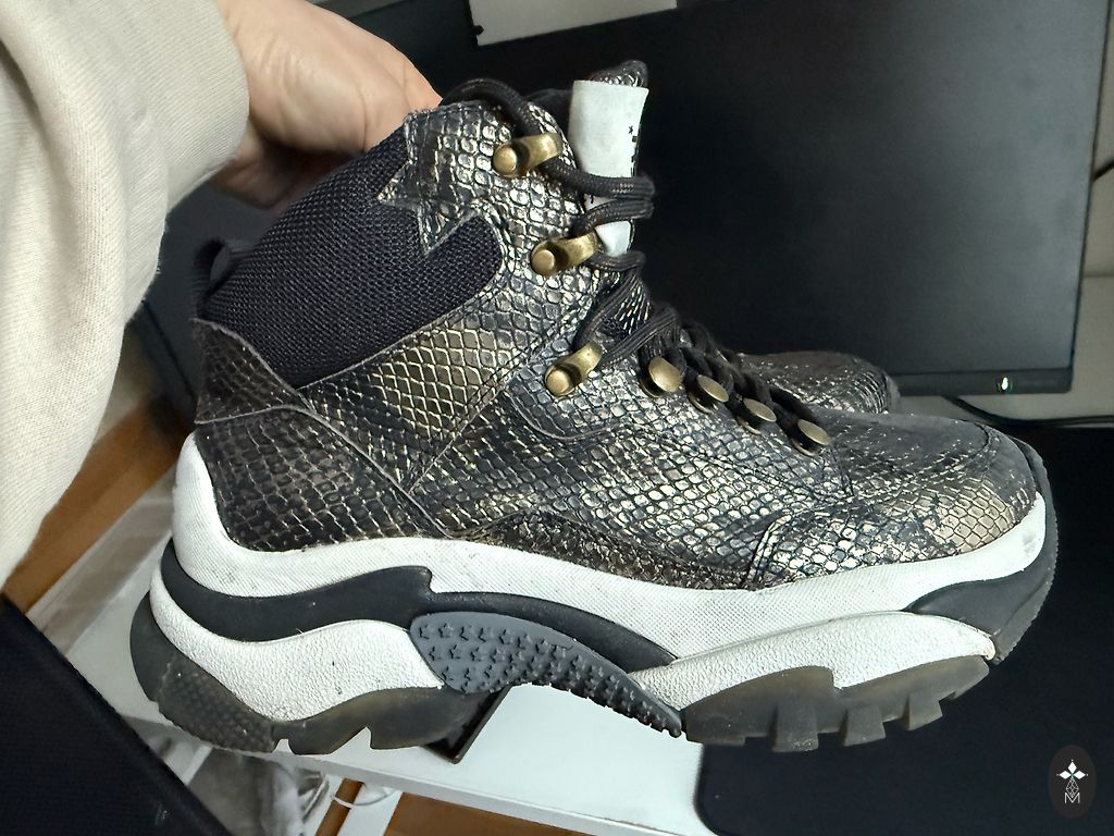 Kõrged tossud. Kangas ja nahk. Kantud mõned korrad. Originaaltallad puuduvad, sees nahast tallad. 6,5 michael suurus ehk 23cm ehk 37.