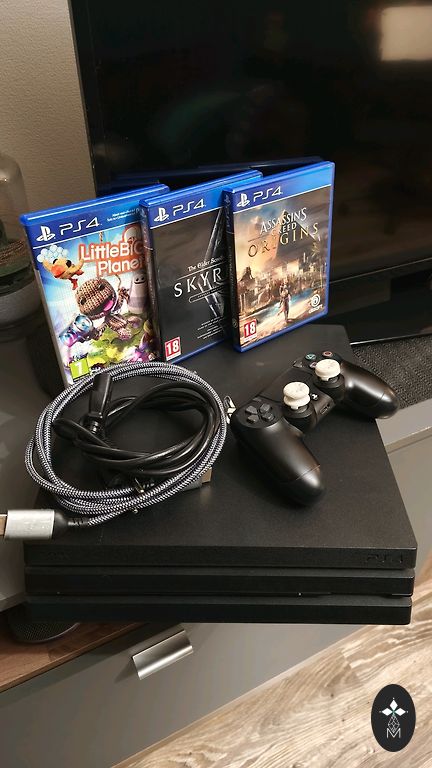 Parduodu Playstation 4 pro konsolę puikios būklės, be dėžutės. Konsolę naudojo vienas savininkas. Komplekte: konsolė, du valdikliai, HDMI kabelis, valdiklio įkrovimo kabelis. Jei turite kokių nors klausimų, nedvejodami rašykite.
