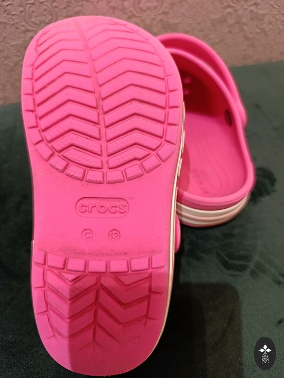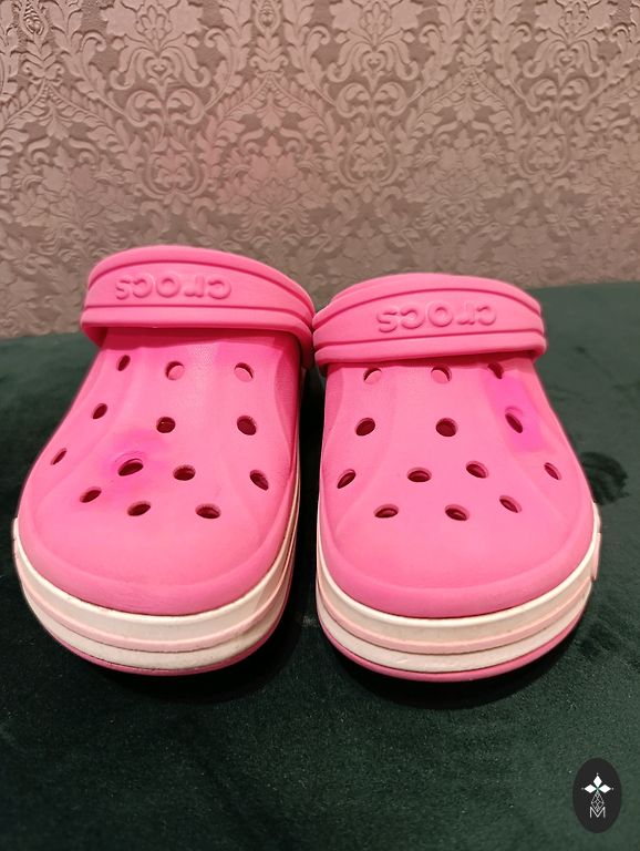 Praktiski nevilktas crocs sandalītes ar vienradža dekoru c6 izmērā. Ļoti ērtas, bērns pats var uzvilkt. Derēs gan vasaras pastaigām, gan dārziņam. Bez defektiem, tikai austiņām ir plekīši no puķu putekšņiem ko knapi var manīt.