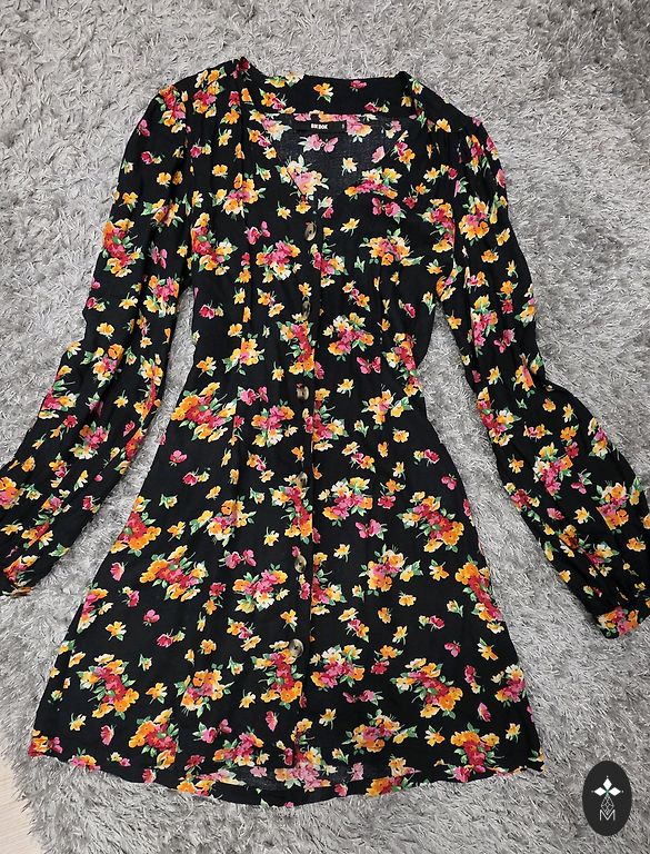 Ilus õhuline kleit puhvvarrukatega. Mitte liiga lühike, kantud paar korda. Ees on kaherealised paelad.