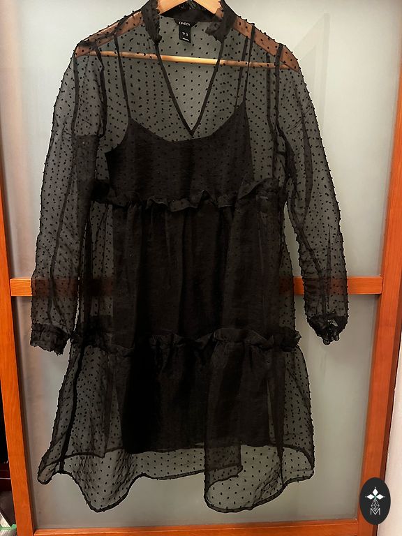 The bottom has a light slit at the front for comfortable movement and gives the dress a stylish accent. The fabric has a subtle shimmer, making this dress suitable for evening events, celebrations, or elegant everyday wear.