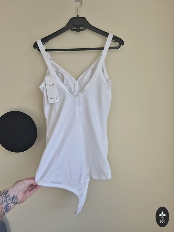 Balta blūzīte ar nedaudz caurspīdīgu augšdaļu, bez defektiem. 🙂