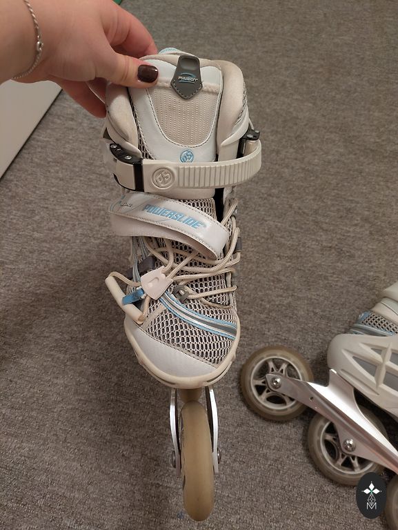 PowerSlide skrituļslidas 39. izmērs. Pirktas savam 38,5 izmēram, lai var vilkt biezāku zeķi.