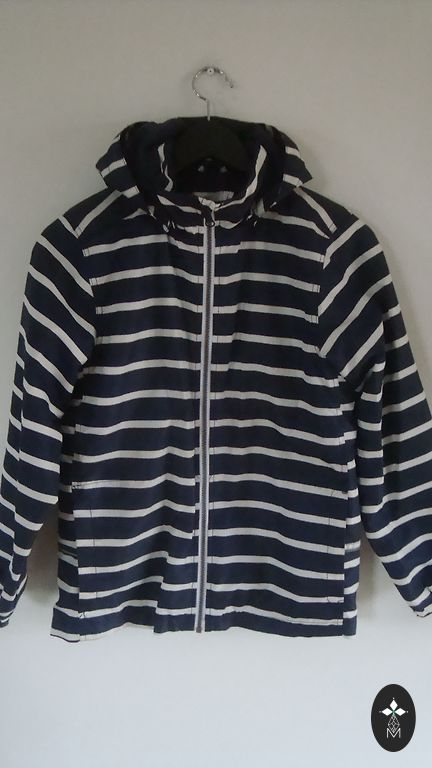 Reima Tec virsjaka, bez siltinājuma, tikai ar sietiņoderi. Ar nopogājamu kapuci un ar atstarotājiem, apakšu var savilkt.