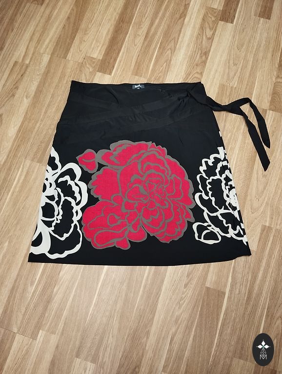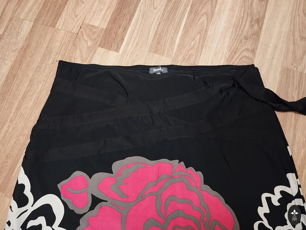Aizmugurē no pakarināmā nospiedies, bet domāju mazgājot izies. Viduklī 40, Gurnos 50, garums 64