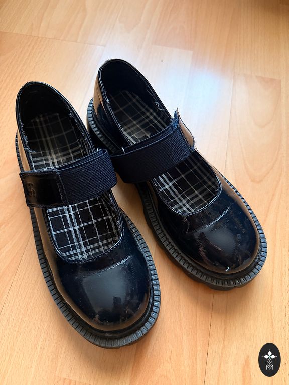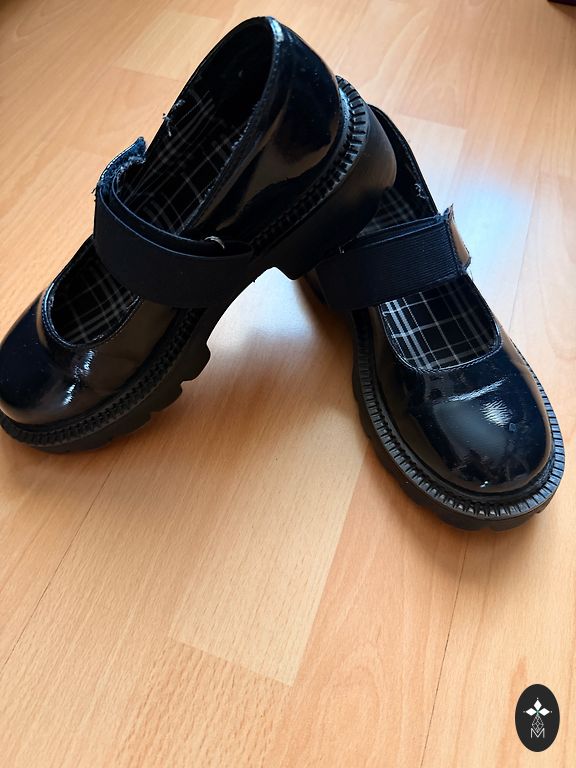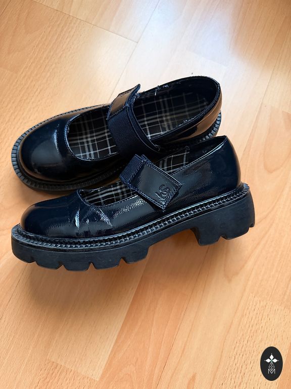 Удобные туфли из искусственного лака. Имеются признаки использования.
