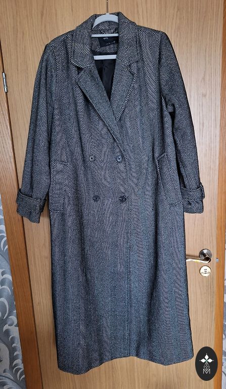 Jauns. Mētelis bez oderes, sintētika. Oversize, garš.