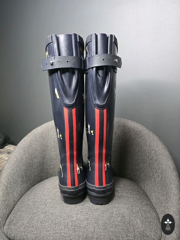 Selling rubber boots. Gently used, but signs of wear are visible.