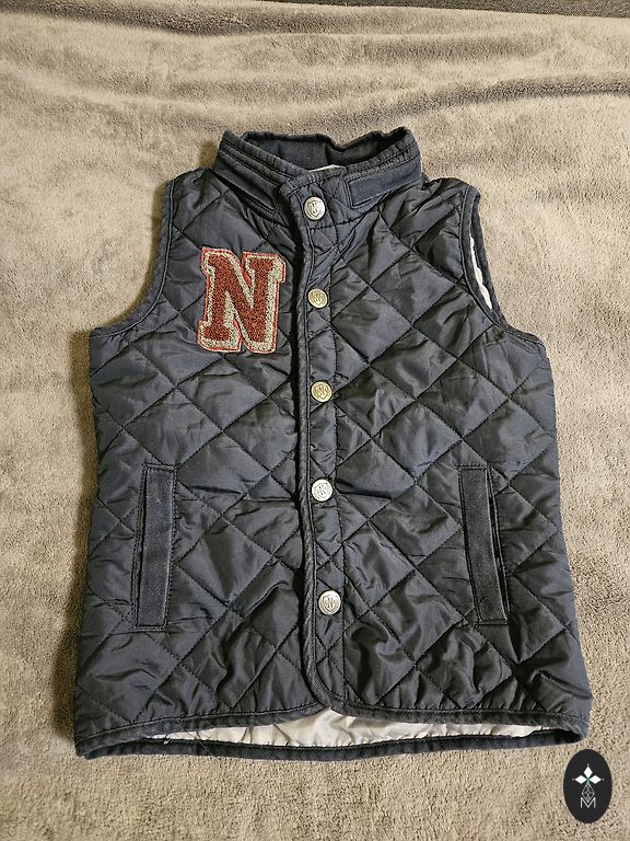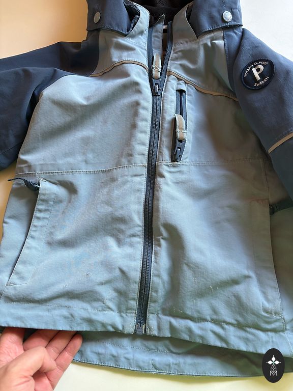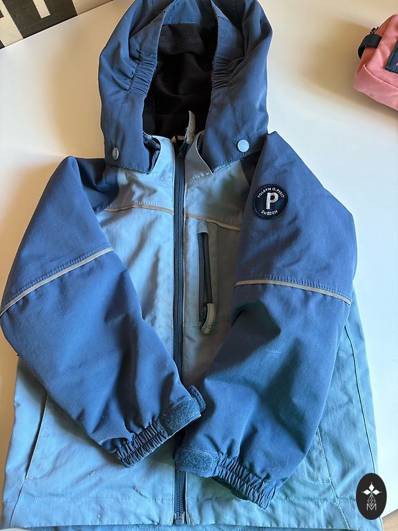 Tarpsezoninė striukė 3in1 128 cm su atsarga. Šiltintą striukę galima pritvirtinti prie vėjo striukės su spaudėmis. Galima dėvėti kartu arba atskirai. Viršutinė striukė yra plona su pamušalu, be šiltinimo. Defektų nėra. Spalva tamsiai mėlyna.